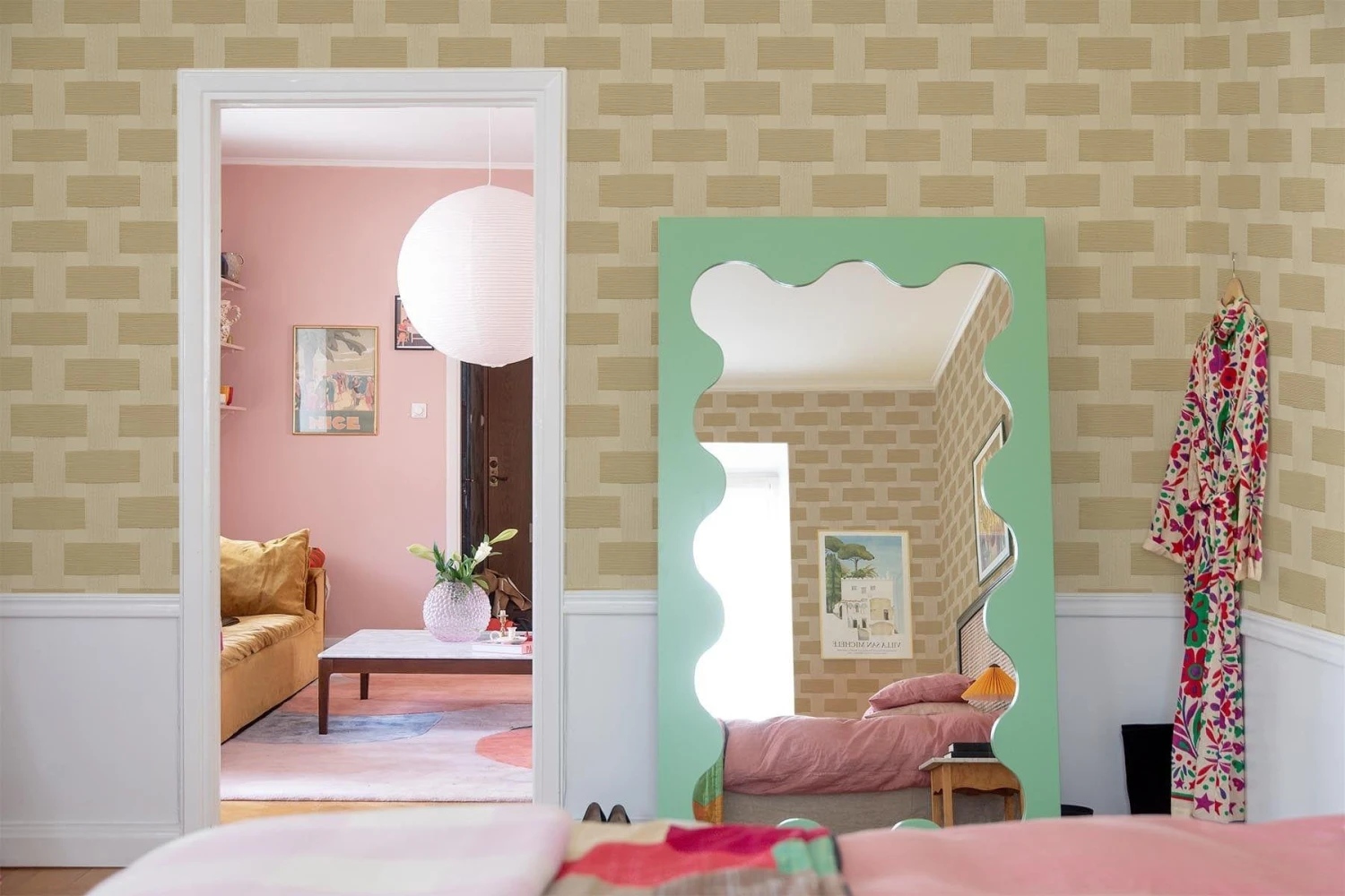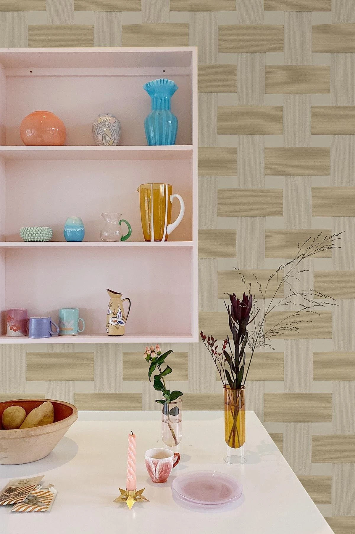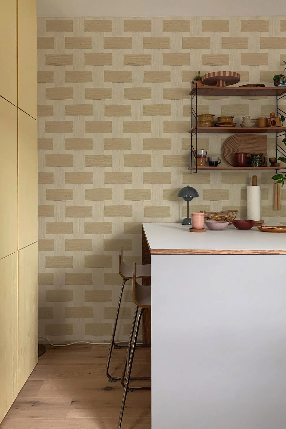 Inspired and created from the craft of embroidery in rectangular shapes, we have created this unique wallpaper with a three dimensional illusion. Embrace your home with a retro style wallpaper for a nostalgic feeling with a modern touch.