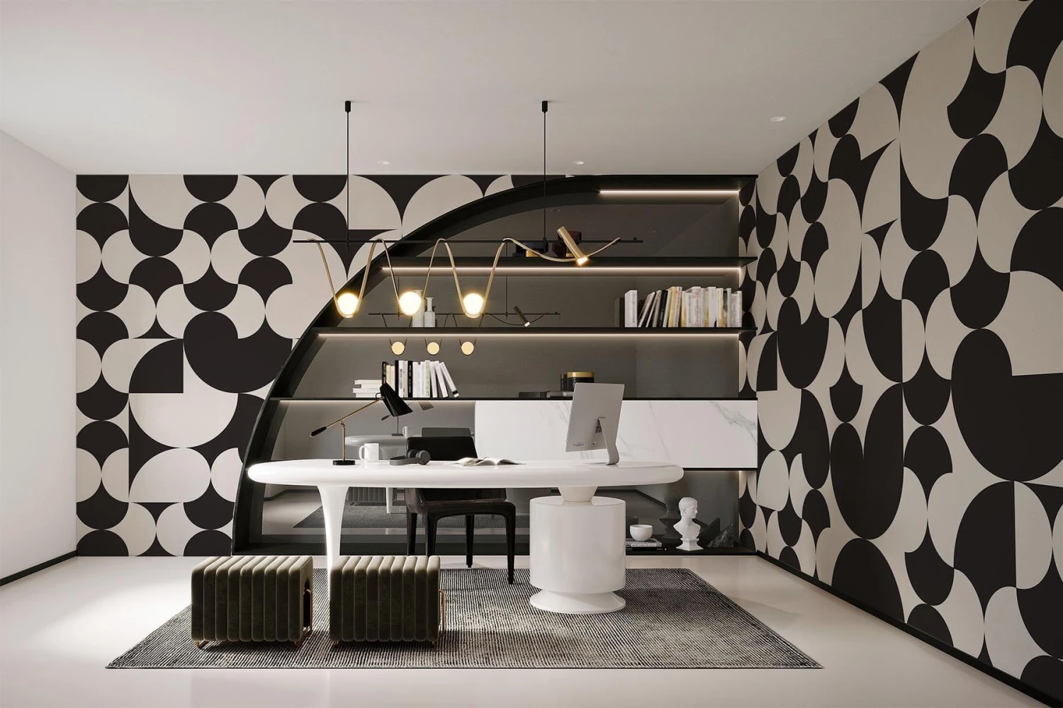 This design was created with classic retro geometric patterns in mind. With the mix of shapes and scale together with an irregular repeat this new classic was born.
