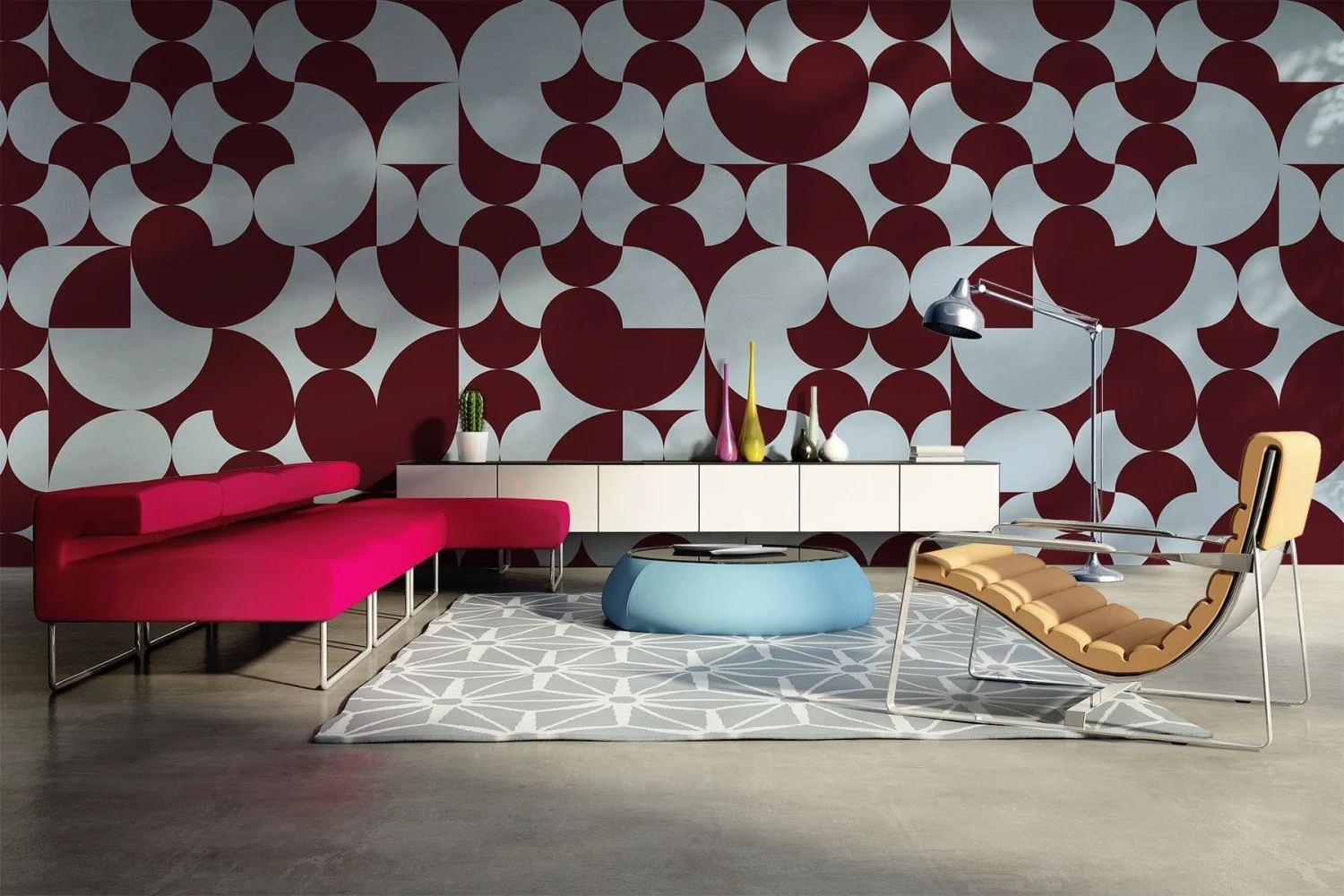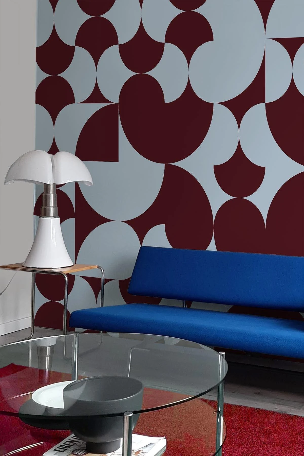 This design was created with classic retro geometric patterns in mind. With the mix of shapes and scale together with an irregular repeat this new classic was born.
