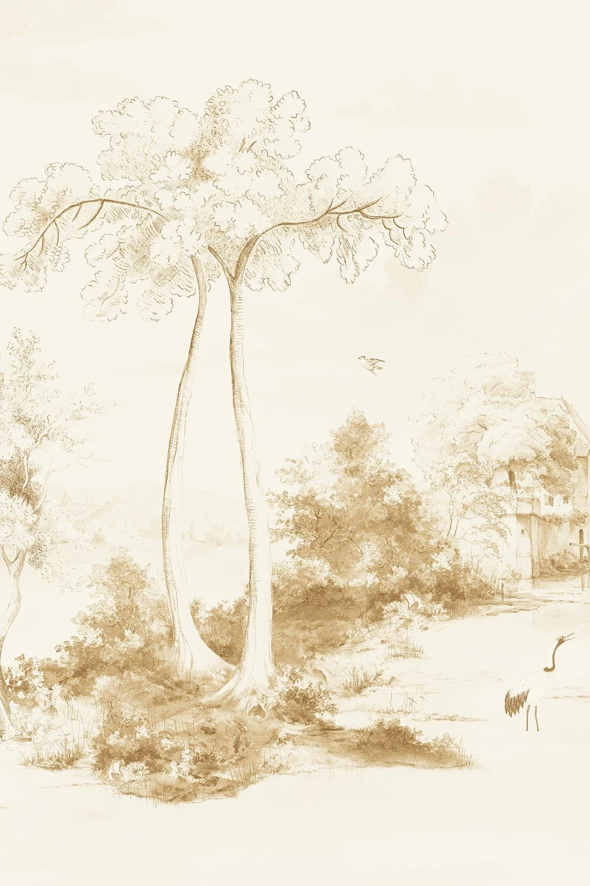 Subtle details emerge within the design—can you spot the Crane by the water? This timeless wall mural blends artistry with nature, offering a soothing yet sophisticated backdrop. Available in multiple soft colorways, it is perfect for creating a harmonious and inviting interior.
