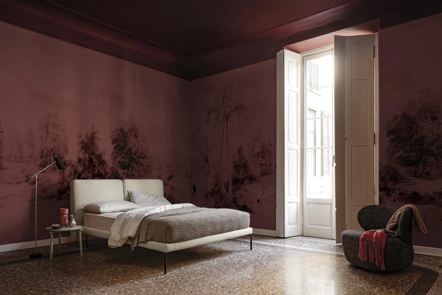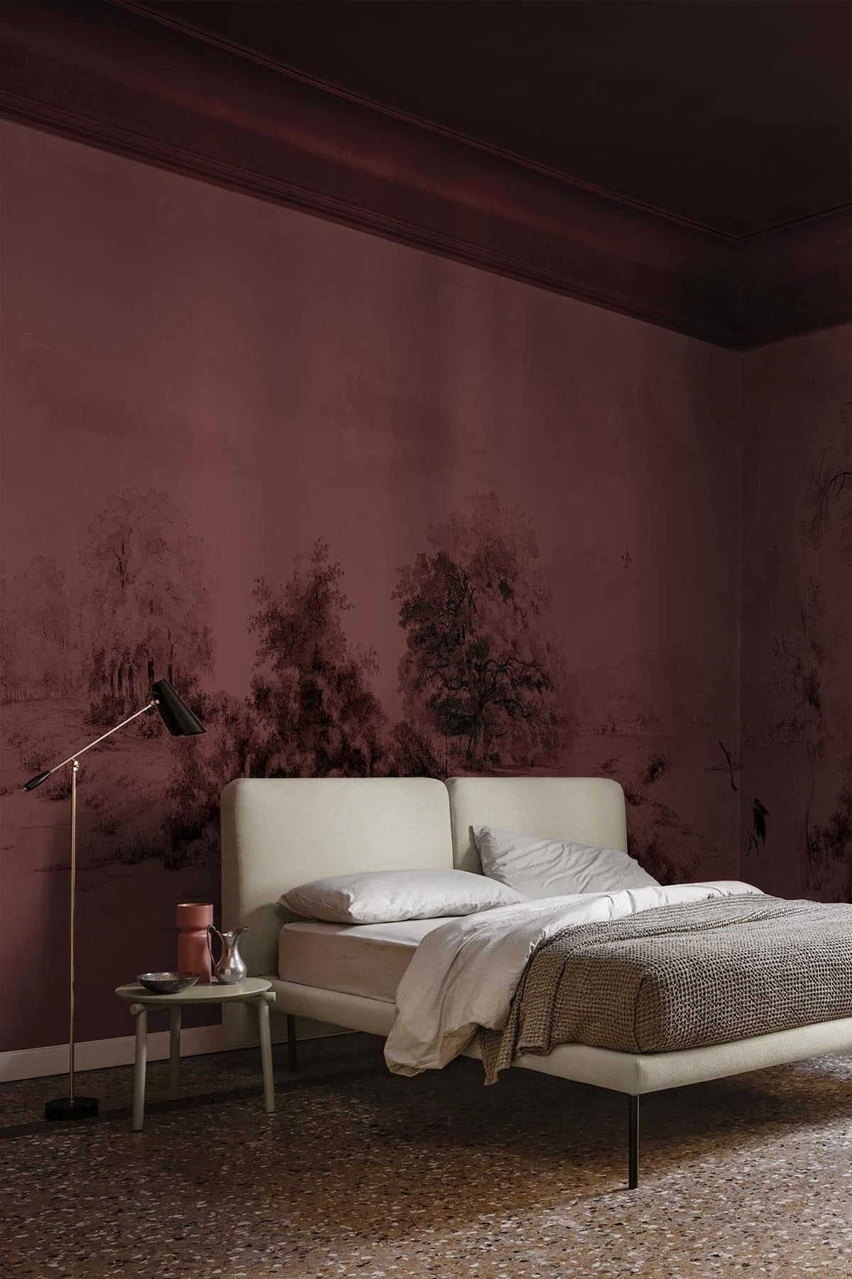 This fluid landscape captures the senses with its scale and perfect moody coloration. The landscape mural in burgundy is made of hand drawn pencil strokes in charcoal, which gives the design its fluidity and soft feel. There’s something special about a scenic landscape wall mural. It brings life and beauty to any room. You can transport yourself to a place of serenity and peace as you admire the stunning vistas. It’s the perfect way to add a touch of nature to your home and create a sense of awe and wonder. Enjoy the beauty of nature, no matter where you are, with this scenic landscape wall mural.