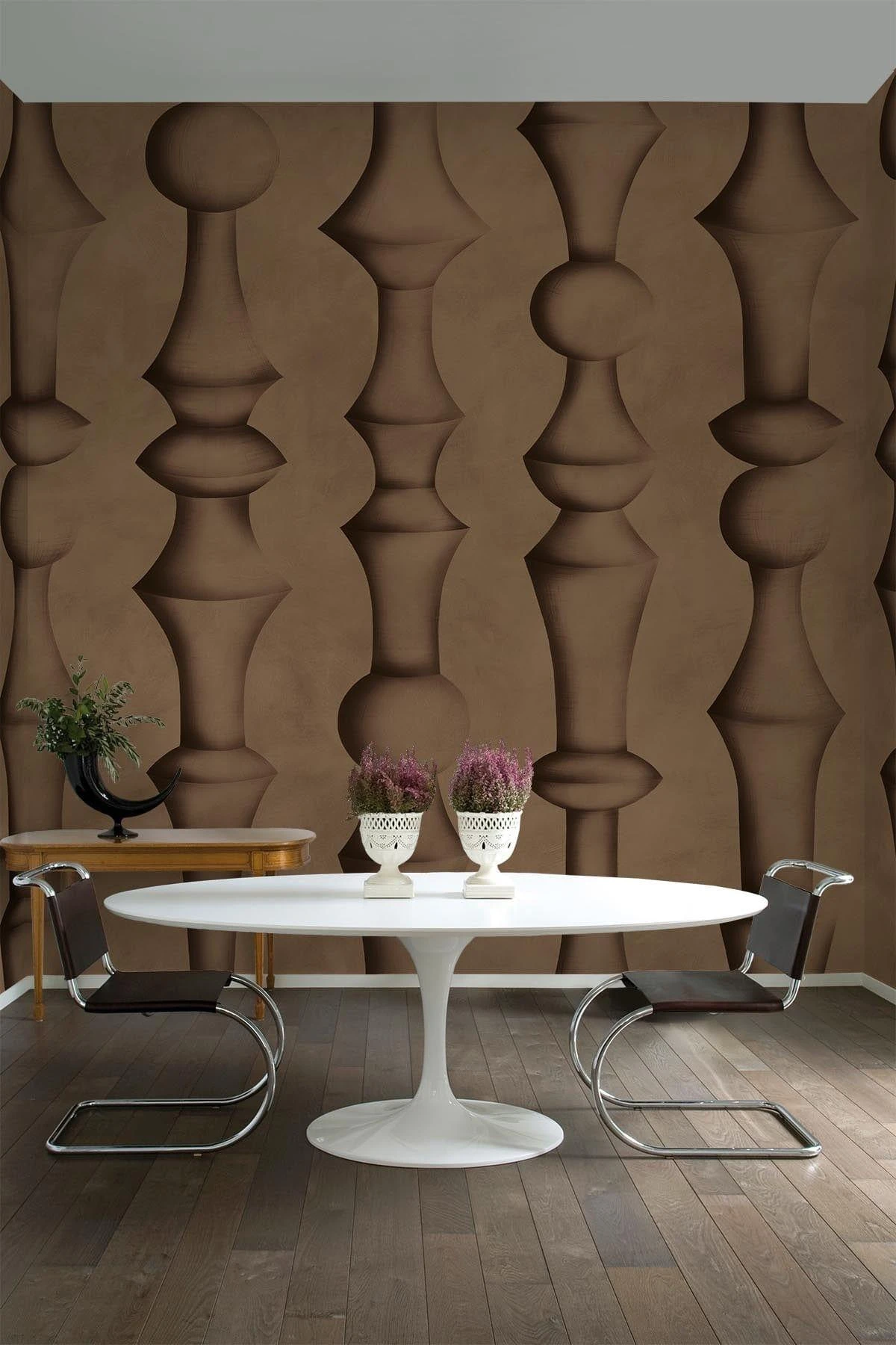 A unique sculptural design of soft shapes embodies the balance between form and function. The sculptural elements are hand drawn in graphite to make 3D forms that are a celebration of minimalistic timeless sophistication.