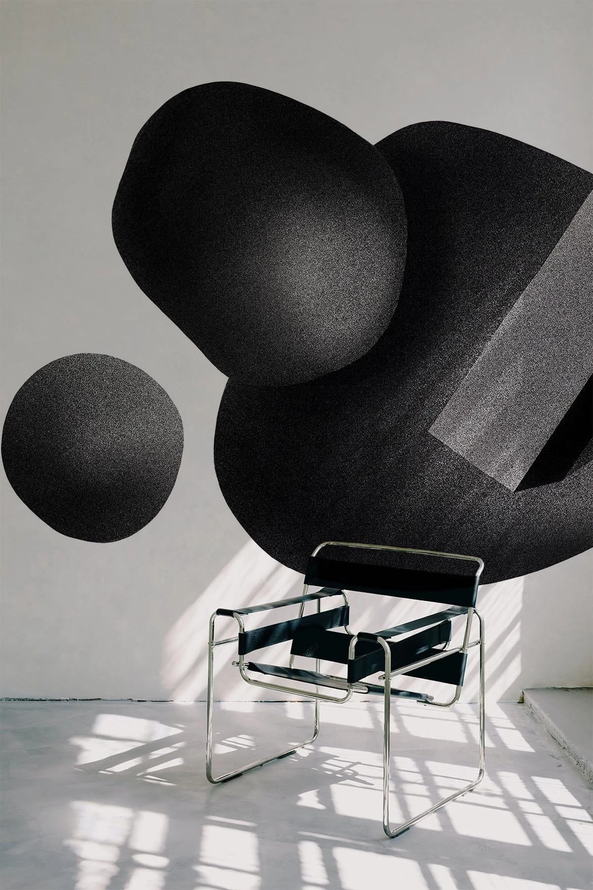 Large scale graphic shapes with an organic touch. This design is truly an artpiece for your wall.