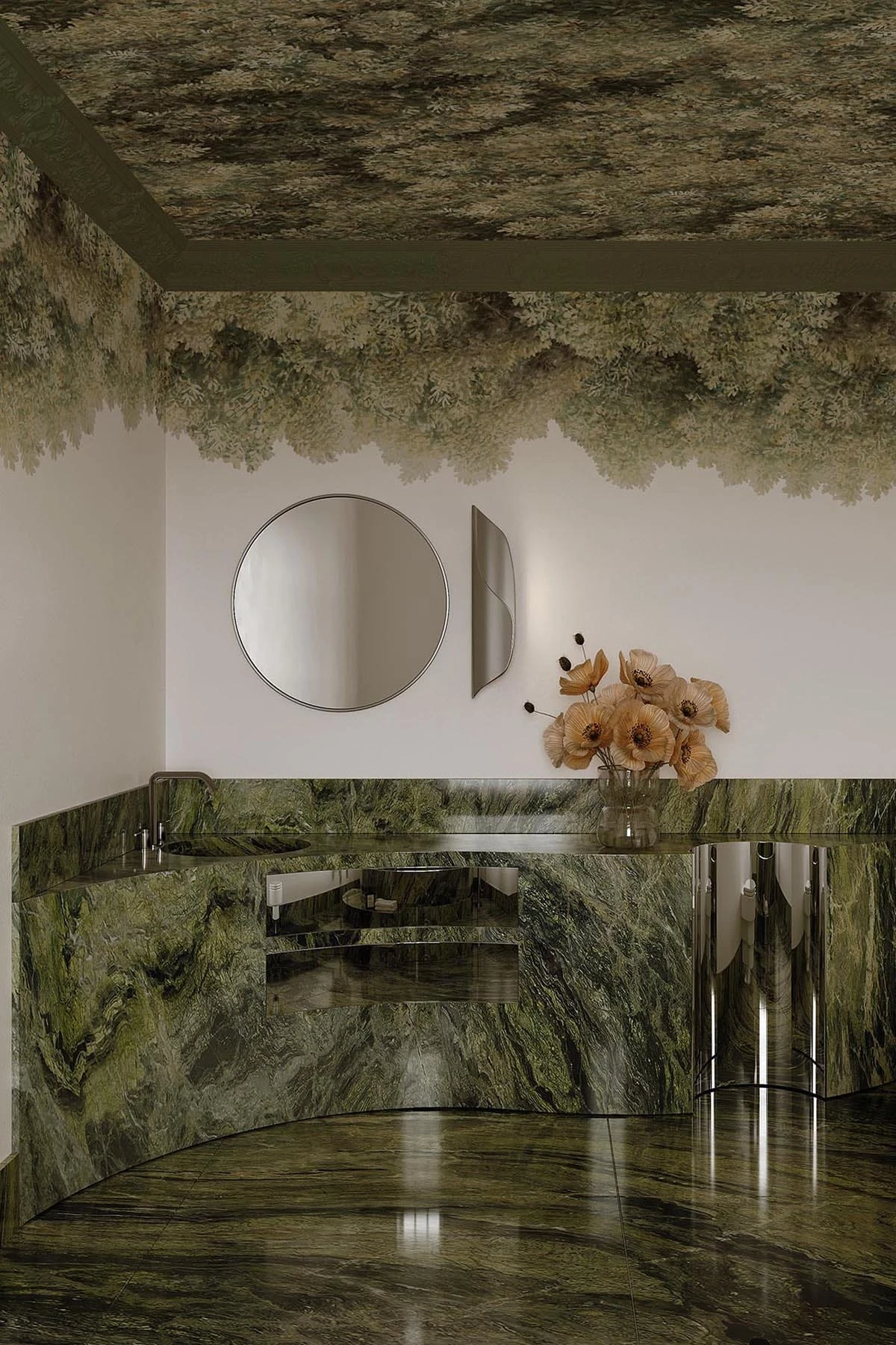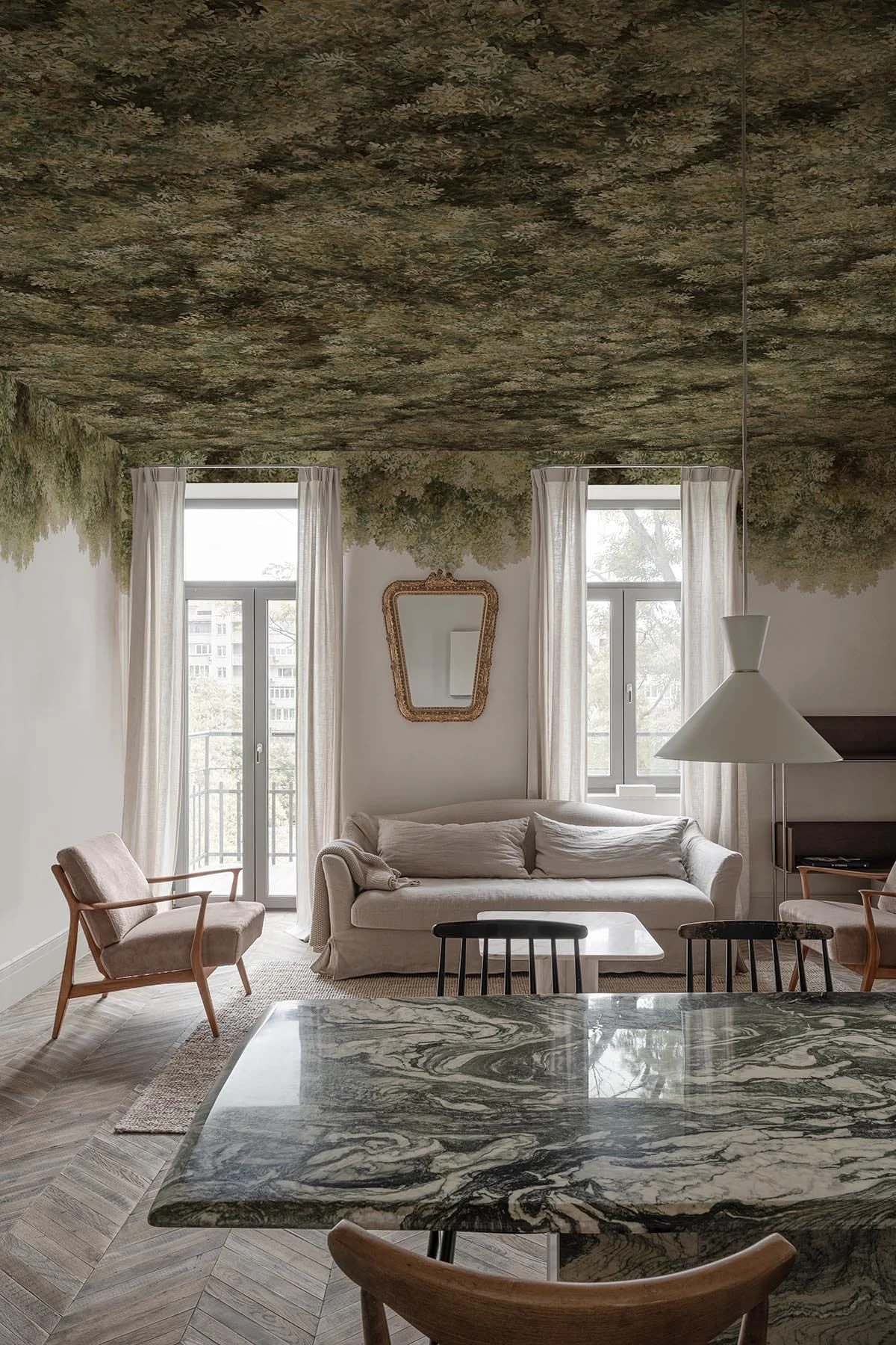 The rich olive green hues capture the depth and serenity of the forest, making it an ideal choice for those seeking a calming yet contemporary aesthetic. Pair it with Wild Forest or Climbing Wild Forest to craft a bold, biophilic statement that transforms your interior into a tranquil woodland escape.