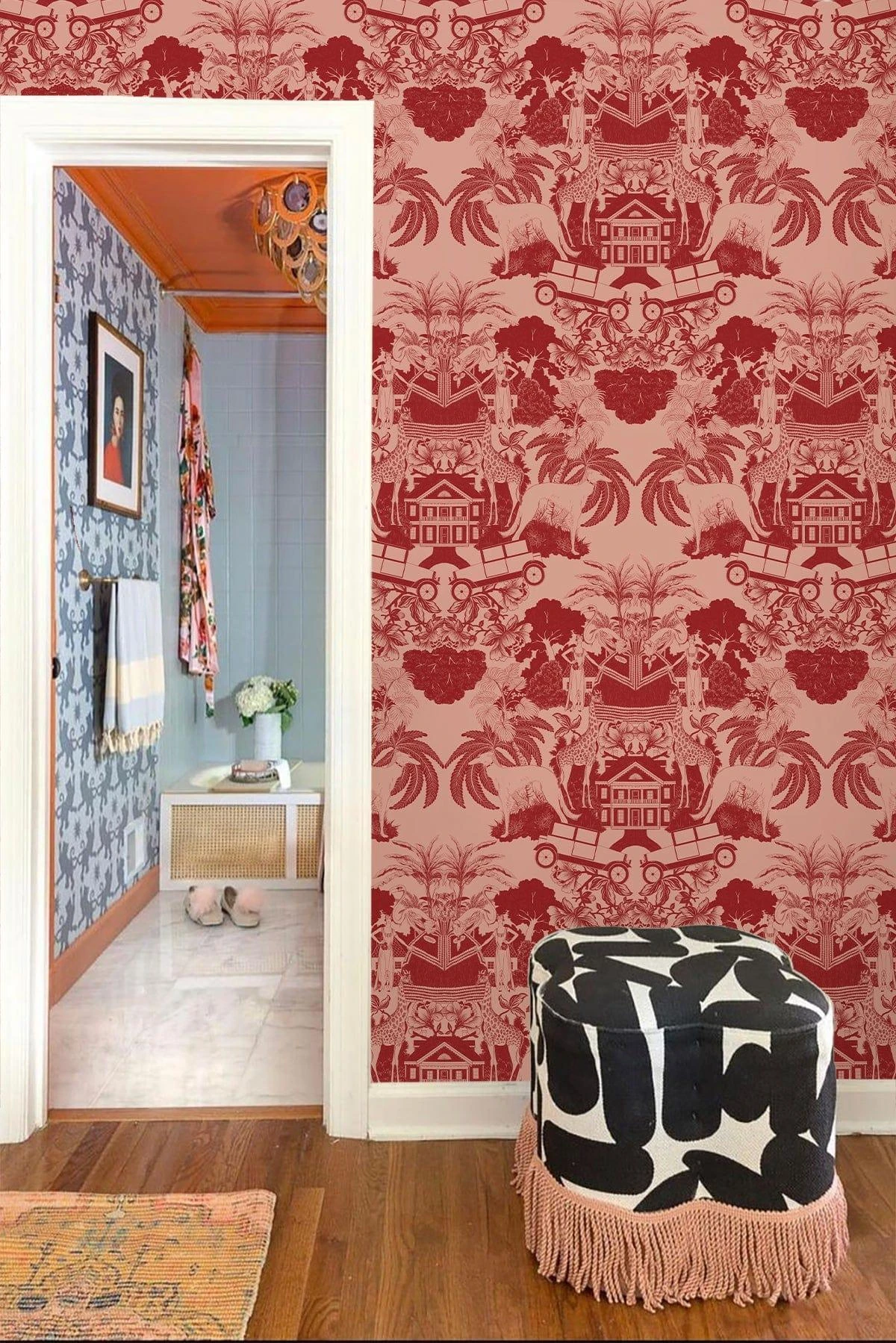 A stunning design full of unexpected details. The more you look the more you find, a true storytelling design that never goes out of style. Toile de Medallion suits both in a personal home as well as for a stunning hotel bedroom or restaurant. This eclectic pink and red colorway brings joy to any interior and gives the space that self confidence we all love to be surrounded by.
