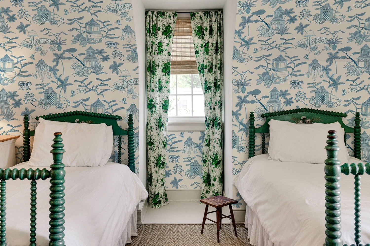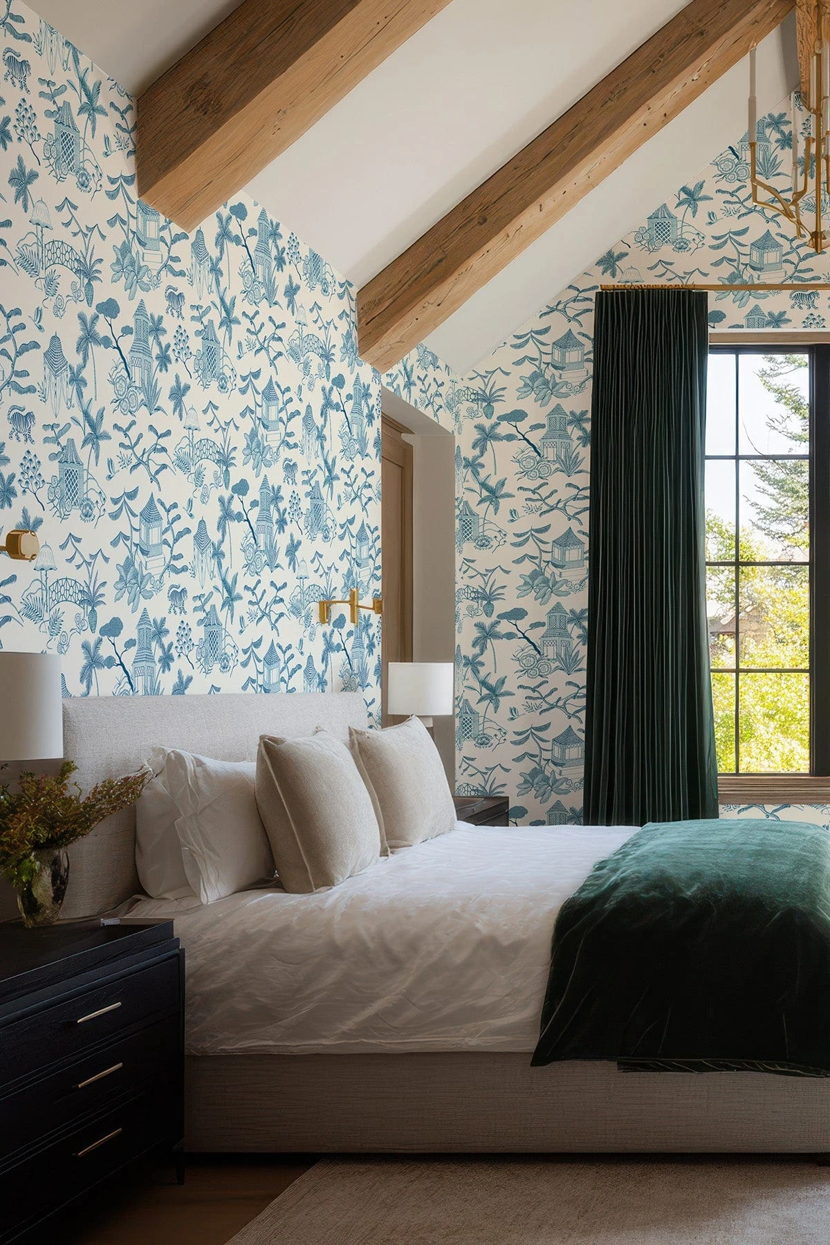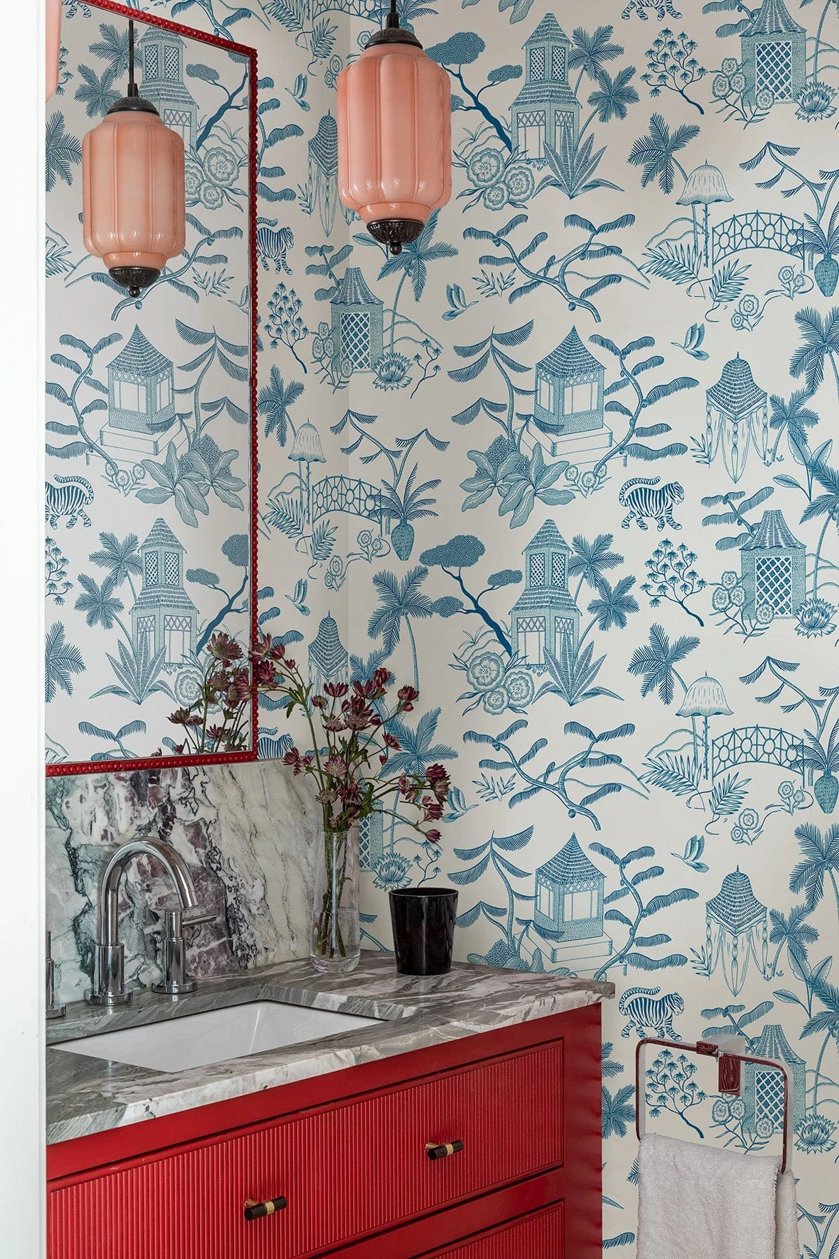 Against a clean white canvas, this toile wall mural captures tropical island scenes in delicate blue linework. Inspired by the centuries-old French toile tradition, the design combines fine artistry with modern precision, illustrating lush palms and island motifs. The subtle colorway adds calm sophistication, making it ideal for spaces seeking a blend of classic storytelling and contemporary style.