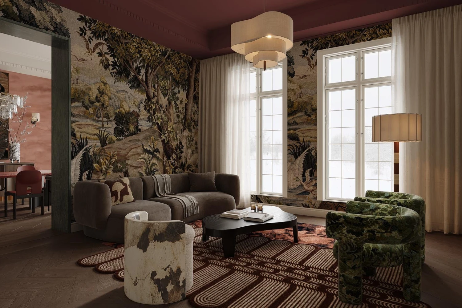 Marsala Red Forest Green