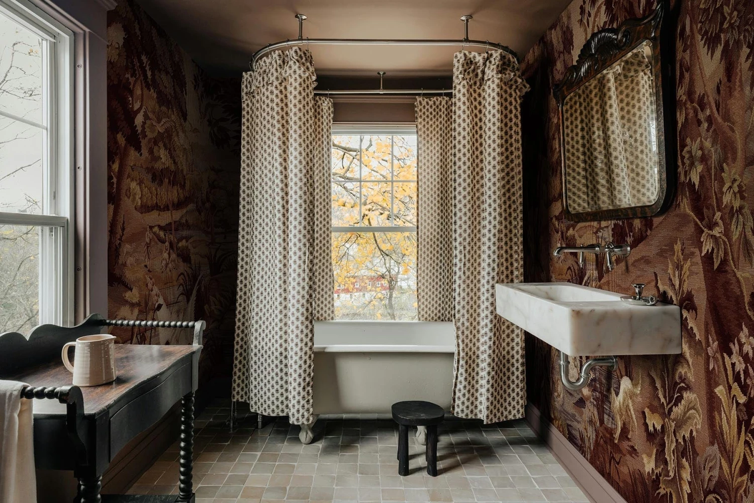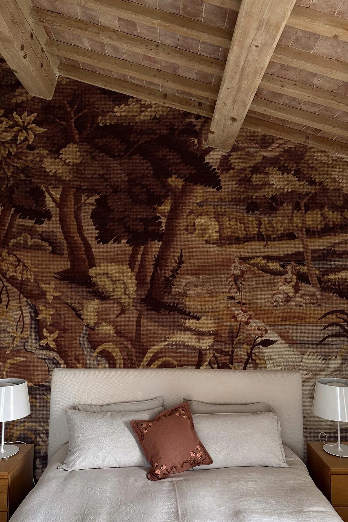 For a richer, more dramatic feel, Verdant Tapestry in Marsala Red transforms the woodland scene into a warm, atmospheric story. With tones of deep reds, marsala, and earthy browns, this mural evokes a sense of heritage and grandeur. Perfect for creating a moody, cozy, and luxurious atmosphere, it adds visual depth and a sense of artistic history to any room—a true statement piece with soul.