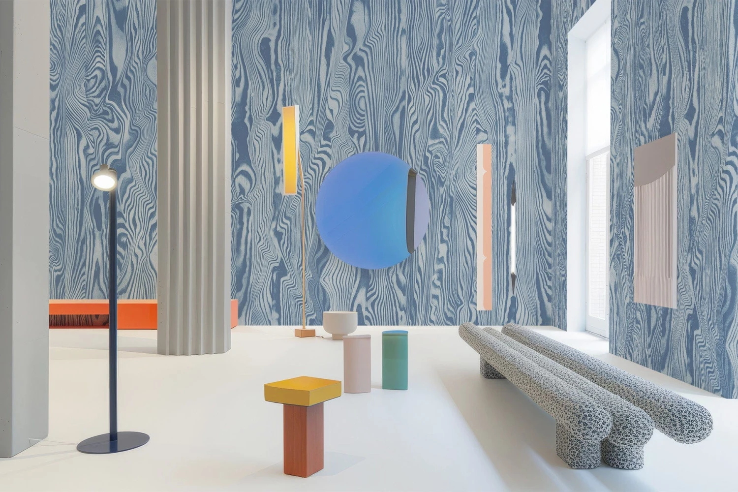 Experience the striking beauty of Vibrant Veneer in Blue, where bold, vibrant tones meet fluid, marbled wood grain textures. This dynamic wall mural captures the essence of nature and modern artistry, blending organic waves with a sleek, polished finish.