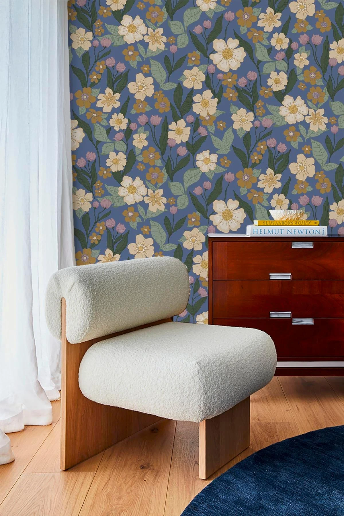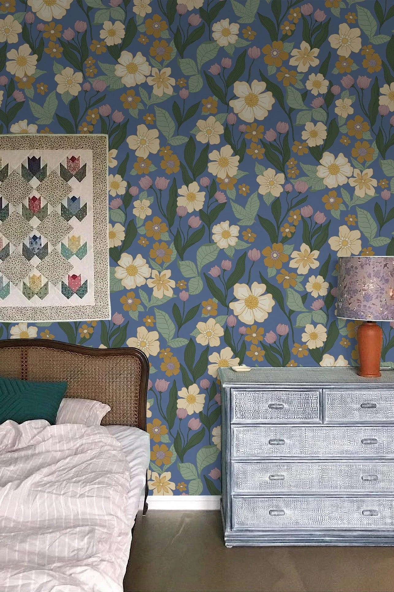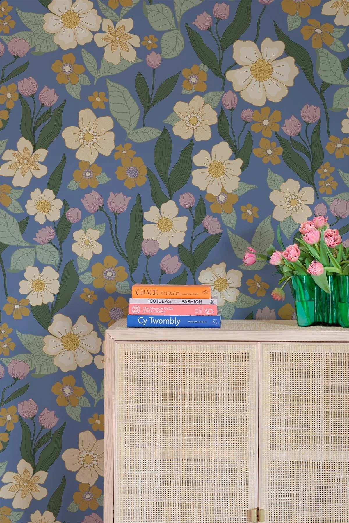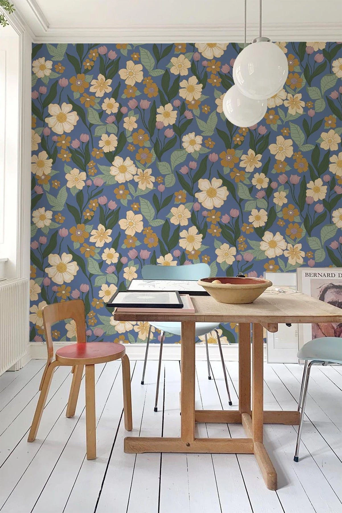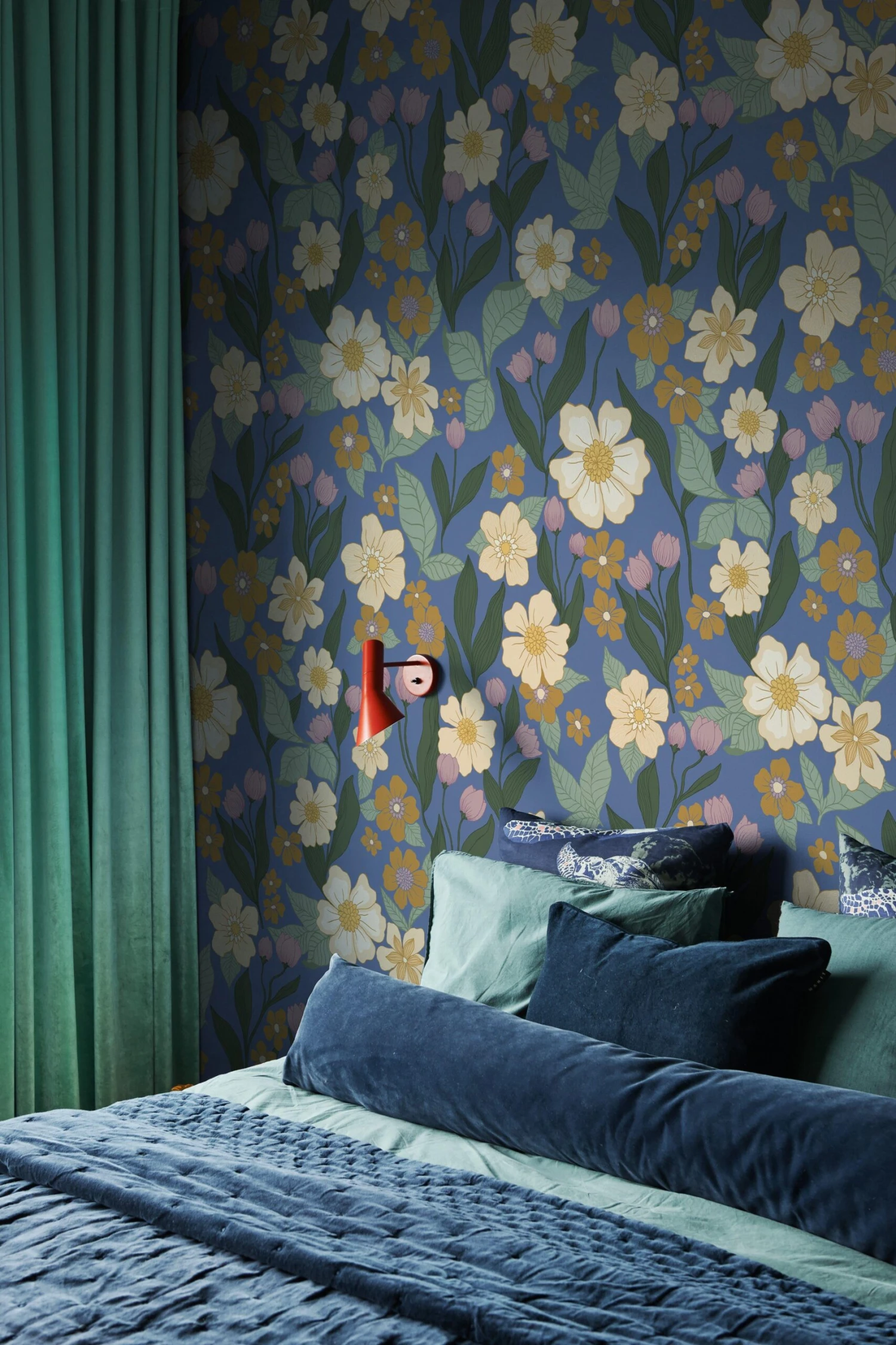 A complex flower pattern with a varicosity of garden flowers. Inspired by classic designs from the 40s and 50s. This updated classic is given a new dimension with its scale and amount of lively colors.