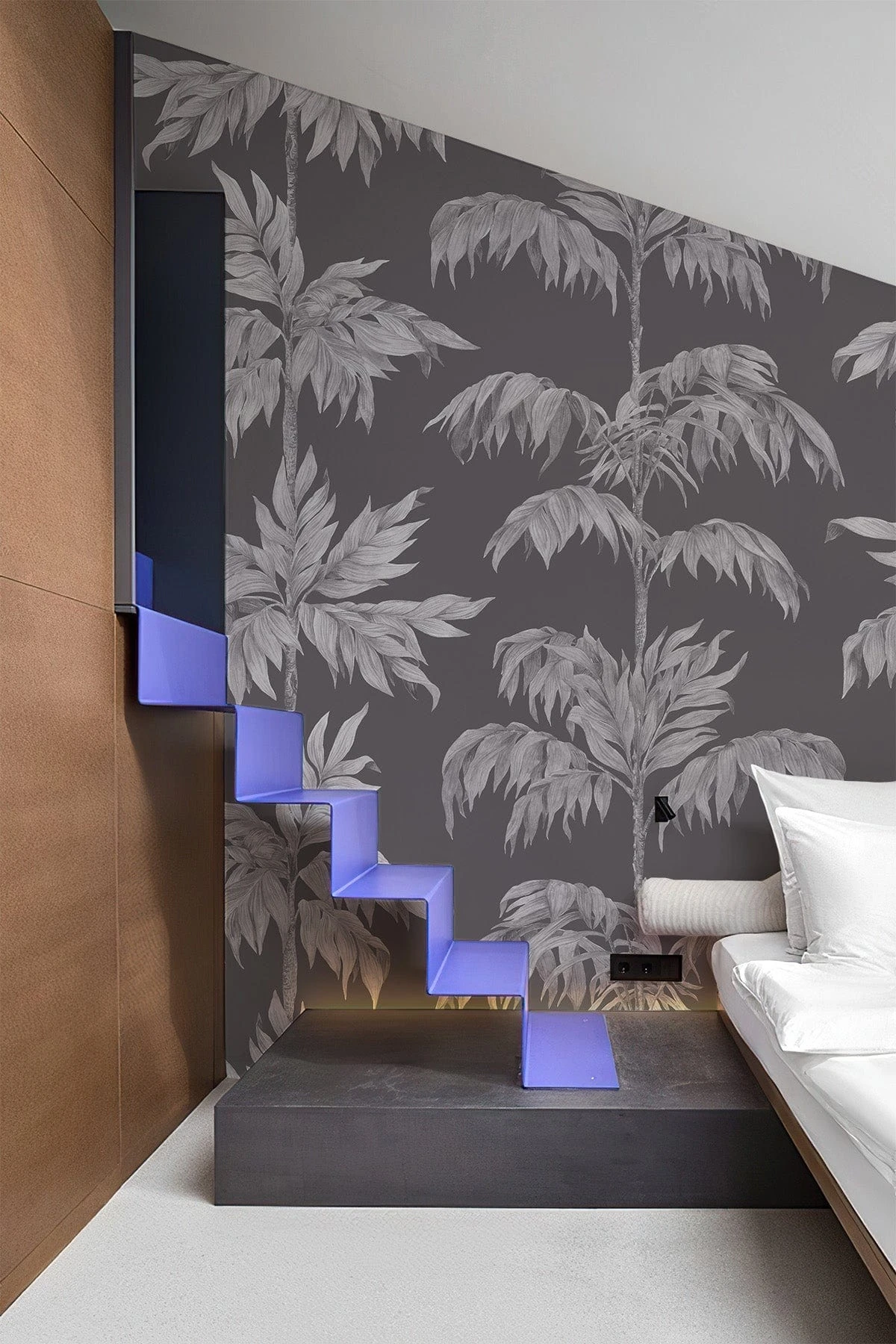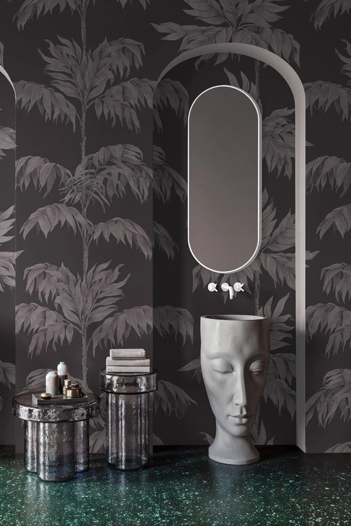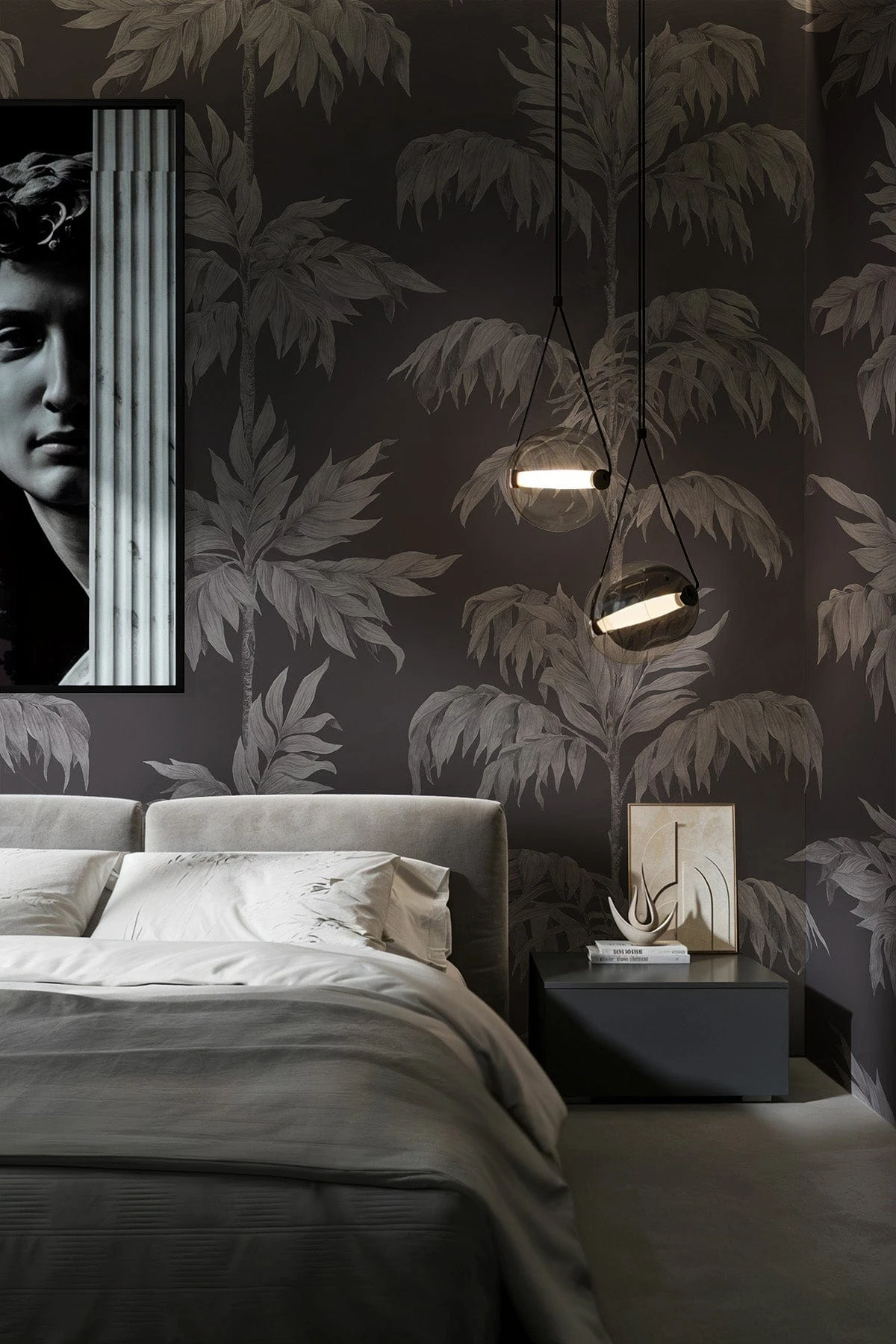 Vintage Palm Tree Graphite is a timeless wall mural with a refined art deco influence, featuring elegant white palm trees set against a rich dark grey backdrop. Inspired by classic design, this mural captures the graceful structure of the palm tree, highlighting its natural beauty and intricate details. Perfect for adding sophistication and a touch of vintage charm, this wall mural transforms any space into an elegant retreat, infusing it with both style and a serene, natural vibe.