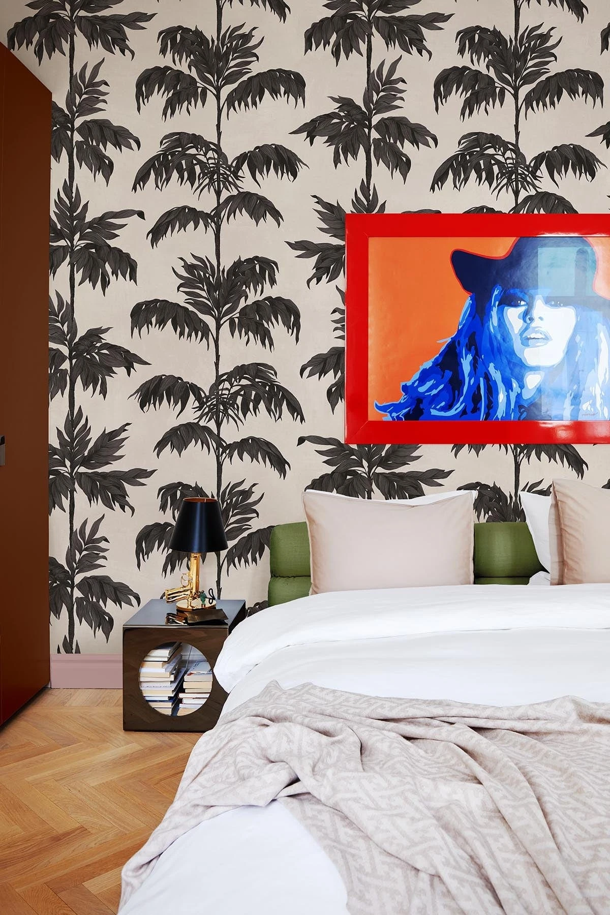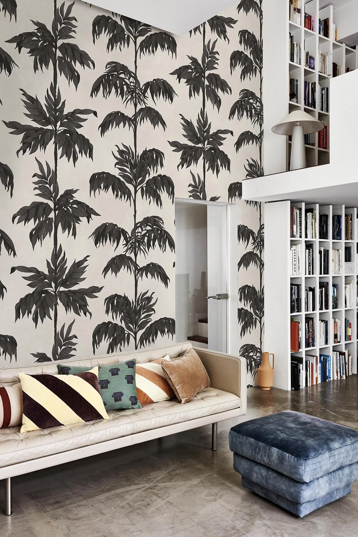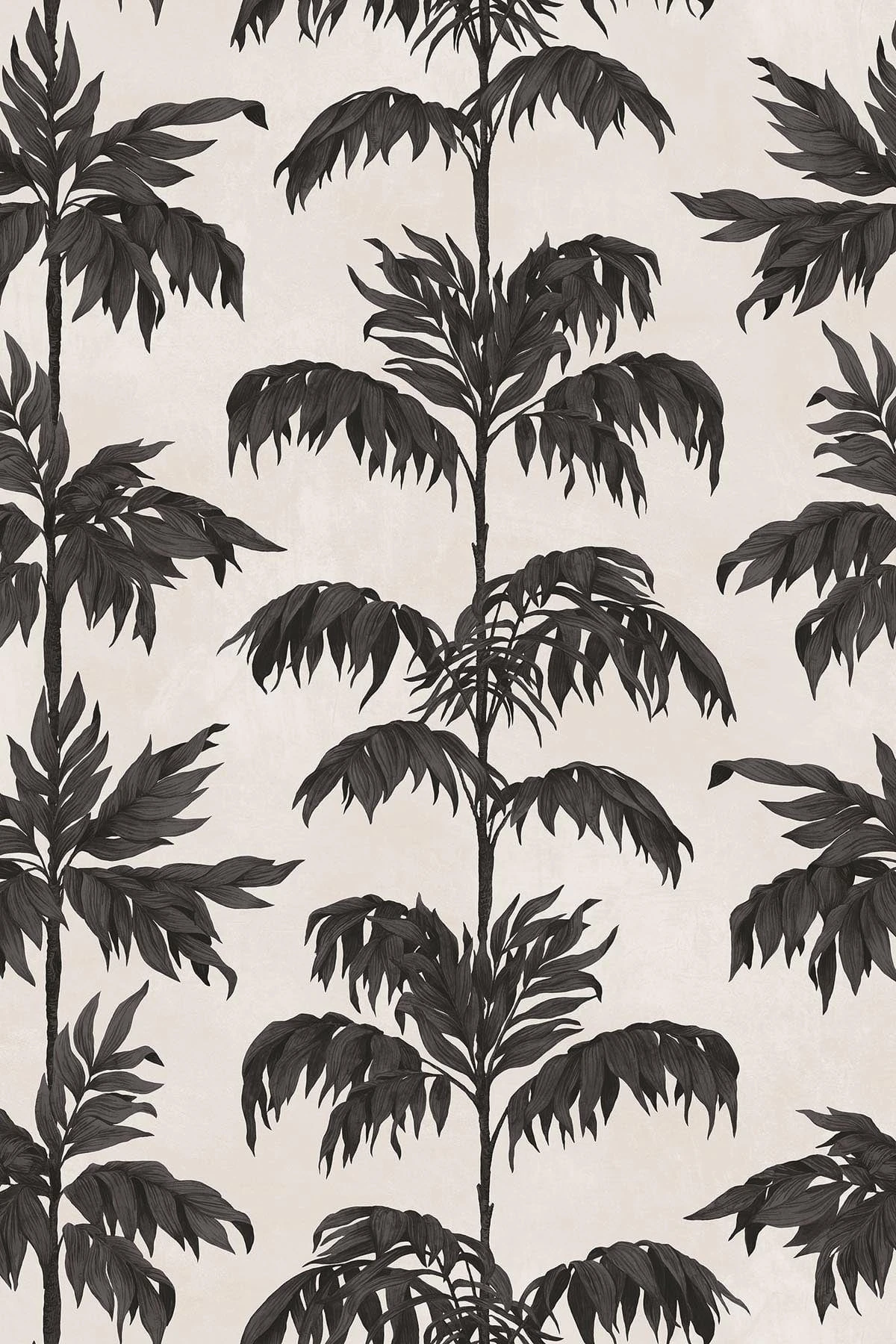 This vintage-inspired wall mural reimagines the timeless silhouette of palm trees in striking black, set against a soft white backdrop. The contrast highlights each delicate frond, creating a graphic yet naturalistic impression — bold in presence, but refined in spirit. With its subtle nod to coastal elegance and classic resort nostalgia, this design evokes daydreams of sunlit shores and laid-back sophistication, from the Mediterranean to the Hamptons. A perfect statement for eclectic interiors that celebrate contrast, character, and effortless style.