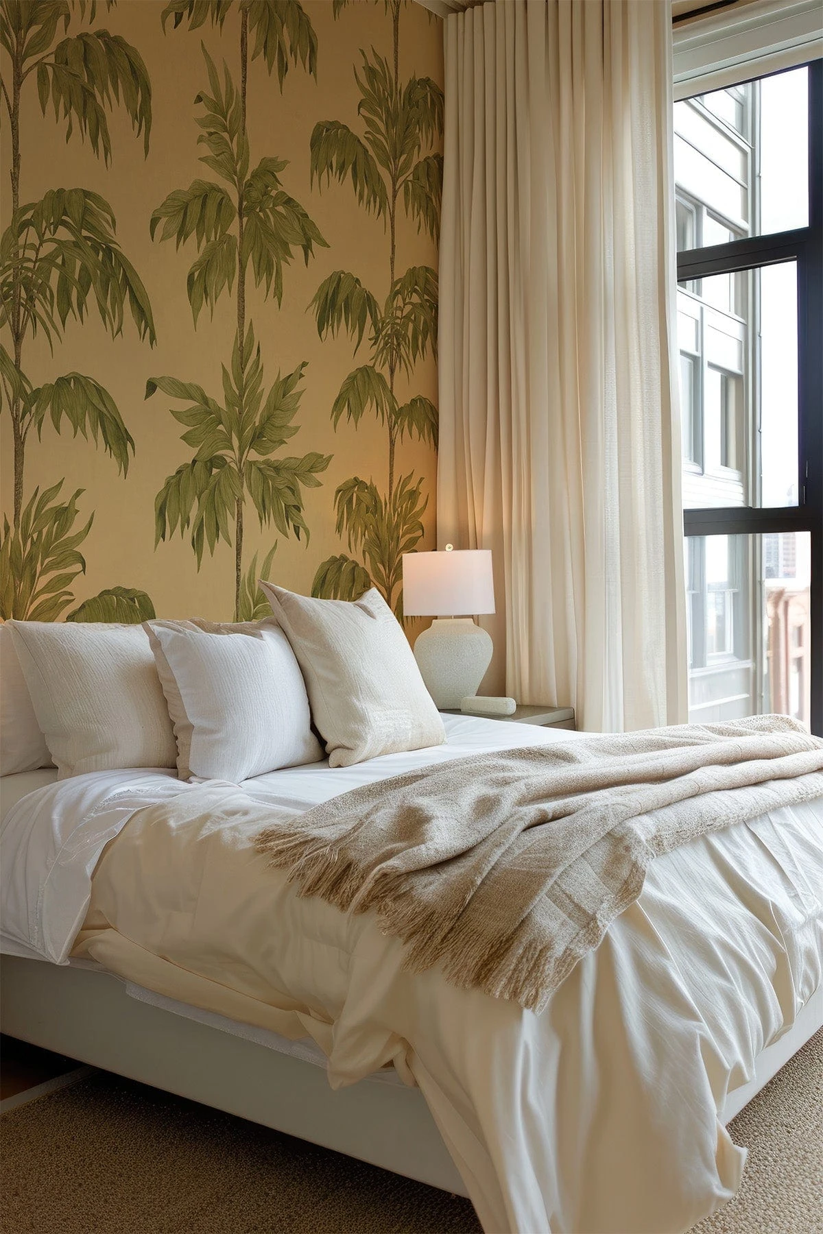 Step into your own summer escape with our vibrant Vintage Palm Tree wallpaper. Drenched in golden yellow and adorned with lush green palms, this design evokes the soul of a luxury Caribbean resort. The wallpaper’s eclectic charm and timeless tropical motif bring both energy and tranquility to any room.