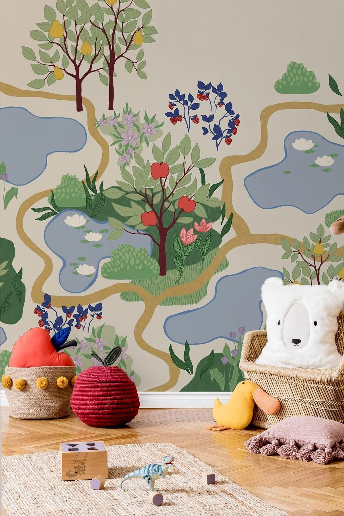A repeatable pattern with roads lingering through the park rich of fruits trees and fruit bearing bushes. What can you find on your walk today?