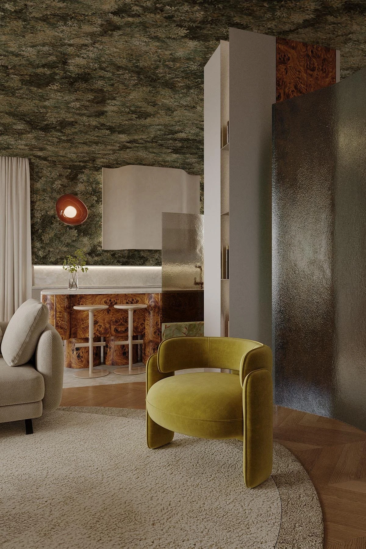 With its soft, flowing canopy and rich olive hues, Wild Forest bridges contemporary design with biophilic principles, making it the perfect choice for those looking to bring a sense of nature’s timeless serenity into their home.