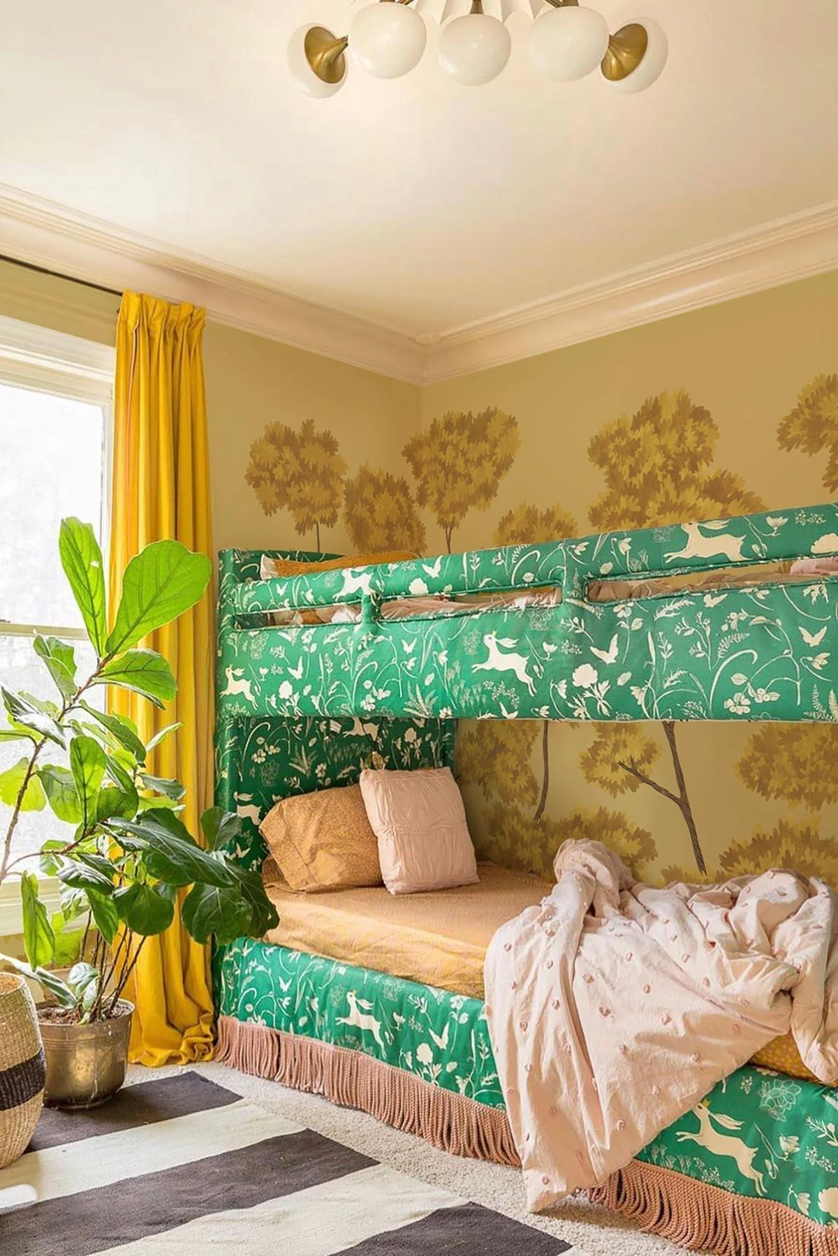 Our Woodland Forest is a simple yet stunning design and an eclectic alternative to a creamy based color palette, bringing nature into the home in the process. Hand painted trees with inspiration from historic tapestries and wallpaper. Rich in depth and details with a variety of tonal yellow colors. Inspired by the historic way of capturing vegetation it features the tree´s in a design reminiscent of iconic Forest designs.